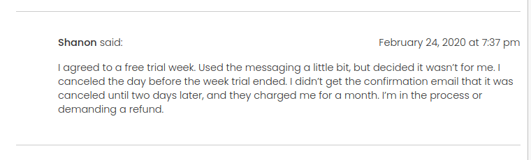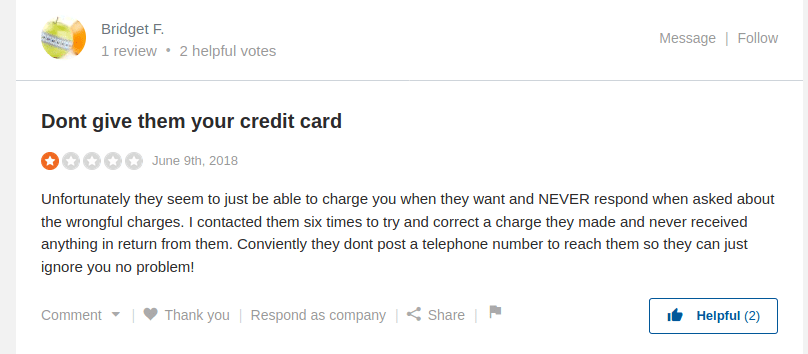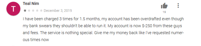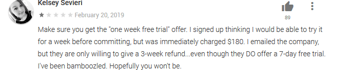 Charging during free trials. This has been extremely common while free trials were being offered for a week; some people were immediately charged, whilst others were charged after half a week. This could happen at any point, although they’d been told they had 7 days to decide whether they would pay for the service at the end of it. Another issue with the free trials was not outright telling clients they had to cancel before the 7 days were through, otherwise they’d be automatically charged. Many people were not aware of this and hadn’t read the fine print. Likewise, some who continued with the service noticed their “free week” had been included in their first monthly payment, being charged again 3 weeks after paying – therefore it hadn’t been free at all.