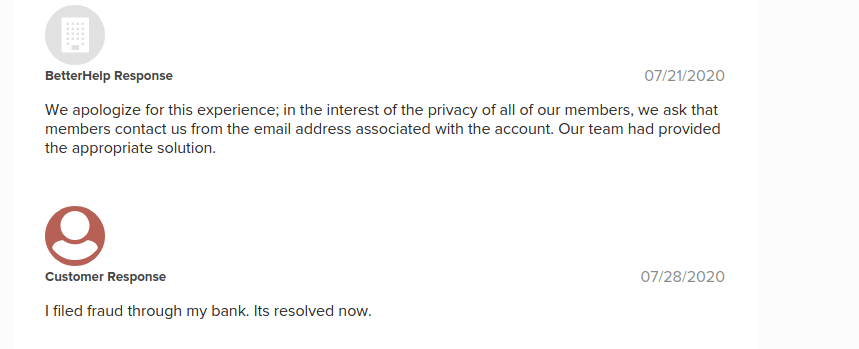 When someone does cancel their subscription, unfortunately, it doesn’t always mean BetterHelp will stop charging them. In fact, some people are charged for months on end after closing their accounts. At times, the company pretends to be unable to find their details due to the account having been closed, and refuses to help them, even if they have proof from their bank that their money was indeed siphoned monthly by BetterHelp.