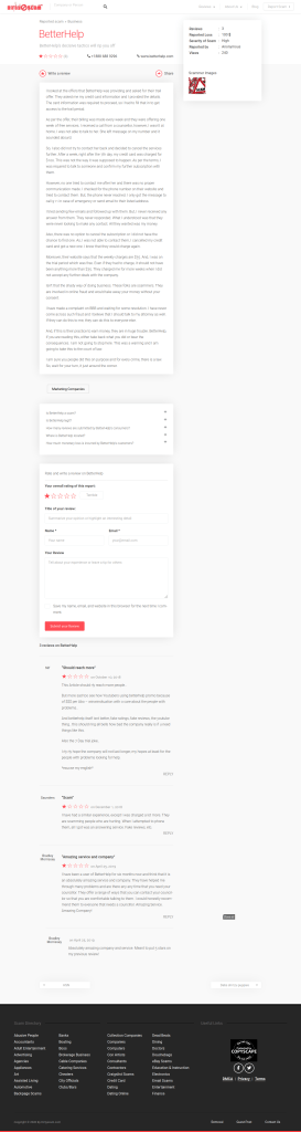 This is turning up more frequently on BBB, as in people who were simply browsing the website and hadn’t created an account being charged as if they had subscribed. The staple response from the company is that “we can’t find an account associated with this email address”. These people can prove BH has been taking their money. Others say they were signed up to a more costly plan than the one they had selected.