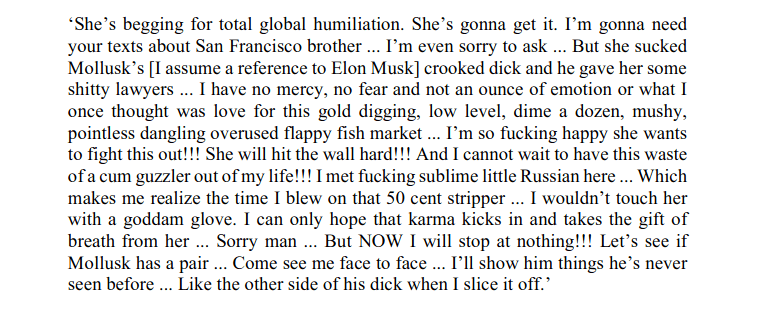 2.Depp’s graphic text, sexually degrading Amber and wishing her dead
