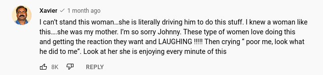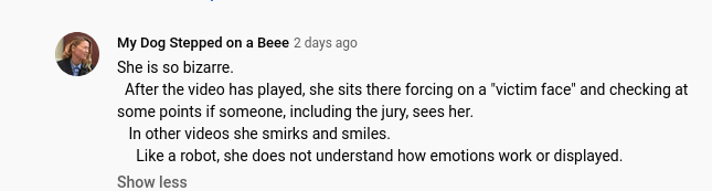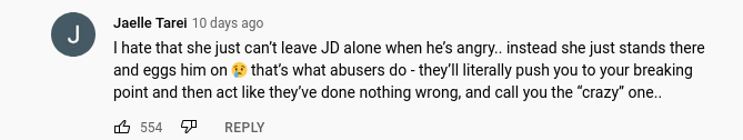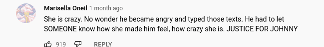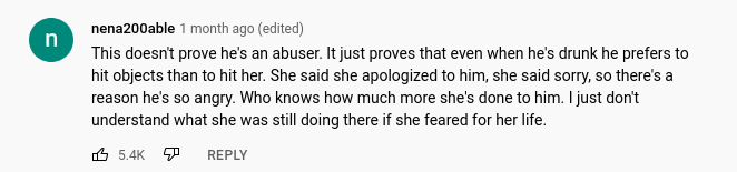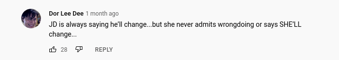For some of us watching this circus in relative silence, the verdict was appalling, as it ignored all forms of domestic abuse minus proven severe violence that would require immediate treatment; the rest was irrelevant to the jury. According to the stenographer, jurors kept falling asleep, especially while watching depositions. The only one to constantly pay attention was a female alternate juror who never had a say in the verdict. Leaving Dopey, Sleepy&Co aside, YouTube alone has often been inundated with thousands of pro-Depp comments per video. Many are so similar in both structure and message one would think they were bots. Others however show intense mental acrobatics to defend behaviour that belongs in a zoo.