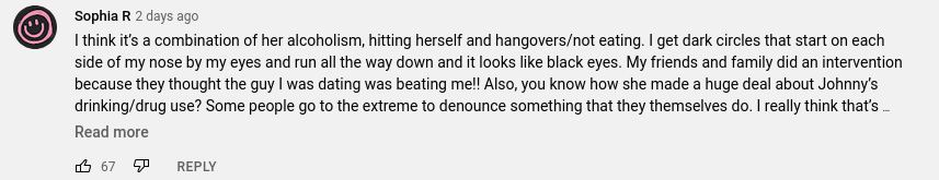 The following is particularly egregious – claiming that evidence of domestic violence someone showed in two court cases had actually been caused by them drinking and falling.