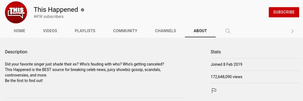 This channel should literally be called Never Happened, and unlike the one above, it doesn’t have a disclaimer of any kind. Apart from the bots they probably use to inflate subscriber numbers, their rubbish goes out a few times daily to hundreds of thousands of headline-readers.