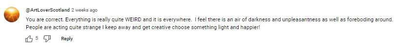 The video is roughly 5 minutes long. Followers don’t need convincing and resonate immediately. Mind that these are people from different parts of the world, with presumably different lifestyles. Regardless of where they live, they seem to “experience” (self-induce) the same paranoia: