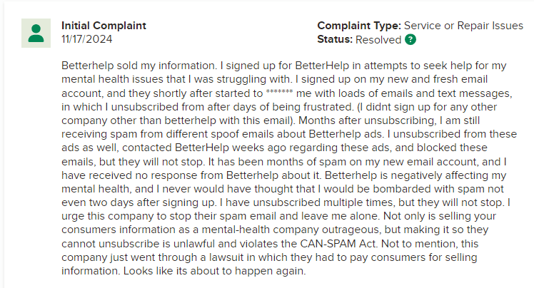 BetterHelp is comparable to strep or herpes, in that regard. How do they do it? Who are they paying off for privileged status? Welcome to unbridled capitalism.