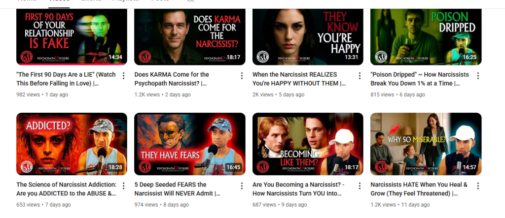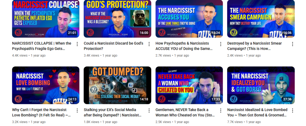 He grew an audience by exploiting former cult members (yes, exploiting them; they were and are fodder for his channel; this individual has no ethics at all). People took him at face value, as they were interested in the stories of those he was platforming. As viewership grew, greed got the better of him and he adopted the armchair psychology grift, using notions like “psychopath” and “narcissist”, plus celebrity names, as SEO. The typical format of his “diagnosis” videos consists of interviewing someone else, tangentially related to the field of psychology (such as fellow grifter Richard Grannon, who loves opining without a degree, for views).