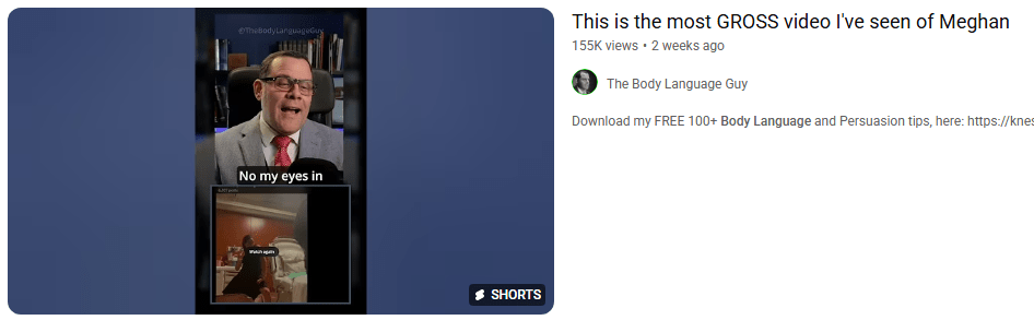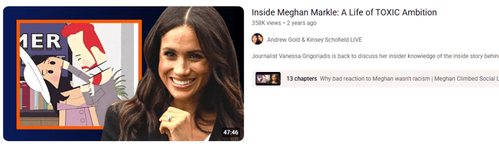 In 2022, Gold boarded the Meghan Markle hate gravy train. He still makes content on her to this day, in collaboration with someone else. Three years. Three fucking years, pardon my language, of speculating on any possible detail of this woman’s life, almost daily. He noticed quickly that this gossip was lucrative, so he kept going. For this alone one should not trust a word this individual says about mental health.