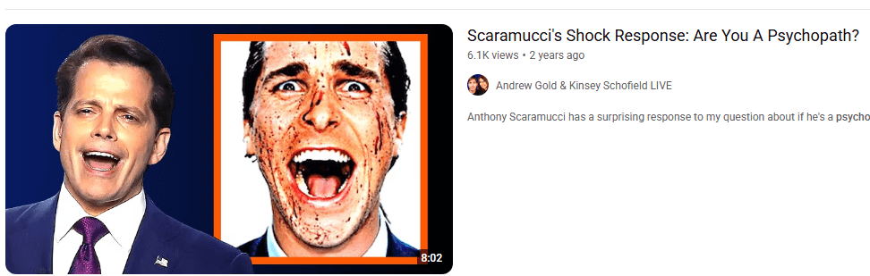 He ended up interviewing Anthony Scaramucci, most famous for his extremely short role in Trump’s first administration. Never mind your opinion on this individual, should you have one – the tactic Gold used was cheap and infuriating. Out of nowhere, he asked Scaramucci whether he was a psychopath, to clip it for a video. Scaramucci took a second or two to answer, probably surprised by the question. This in and of itself was enough for Gold to upload the following: