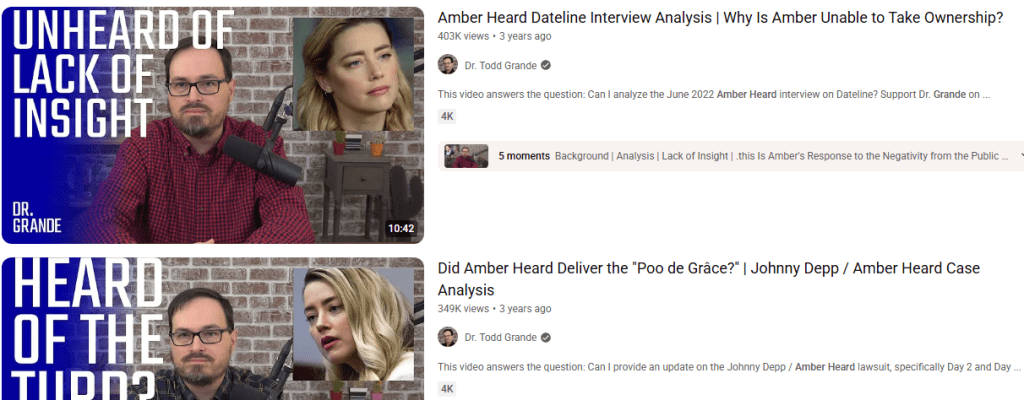 The Depp v. Heard case was a litmus test for some who make money on YouTube using their psychology degrees, focusing on celebrity scandals. They’ve never met the celebrities in question, and although they give a disclaimer of not diagnosing strangers (which would contravene the rules of their profession), there is always a commonality: their opinions align with those held by the majority of viewers. I wonder why!
