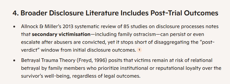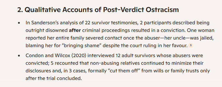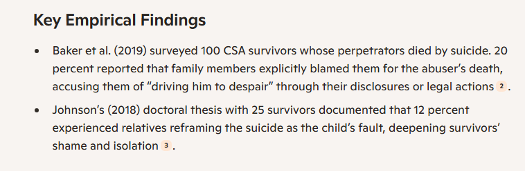 The impact of CSA on the victim, should they consider the possibility that it happened, is an afterthought, if even that. Equally, the impact of the disclosure, criminal proceedings and their own behaviour on the victim, psychologically and emotionally, is disregarded altogether.