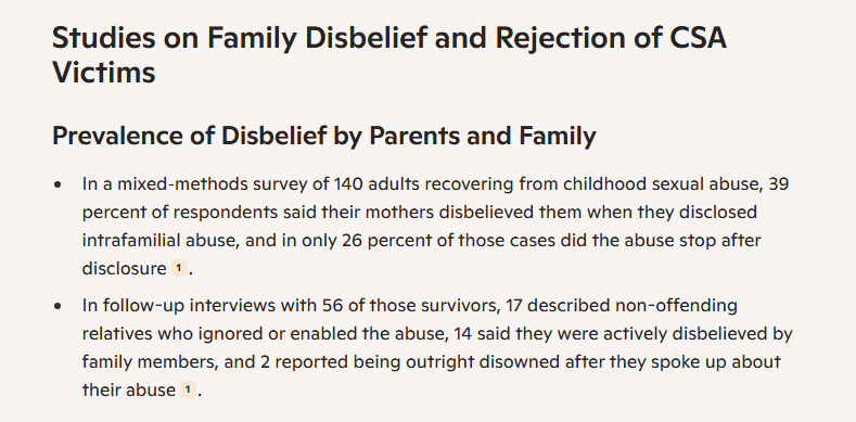 Families like these are the reason many CSA victims stay silent. They know what will happen to them if they talk. In such families, the only unacceptable crime is telling the truth.
