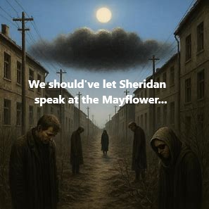 Sheridan is casually talking, with detachment and a feigned sliver of pity, about a community of roughly 1240 starting to die off unexpectedly and experiencing personal tragedies because Waters, Flanagan and himself were not allowed to speak there for one day. To call his imagination sick and malicious would be an understatement.