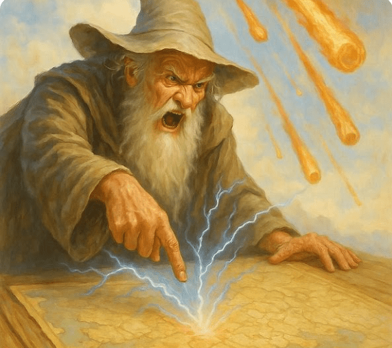 It’s notable from a psychology standpoint that he portrays himself as the saviour of the poor accursed residents, magnanimously warning them, even though their town has grievously wronged him. He is a good person. He doesn’t gloat about the fictional misfortunes the town is about to experience.
