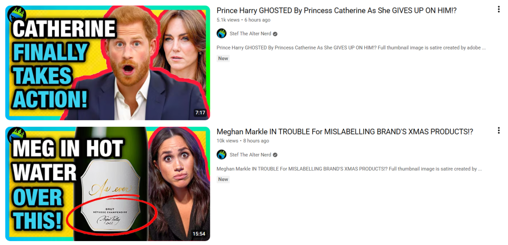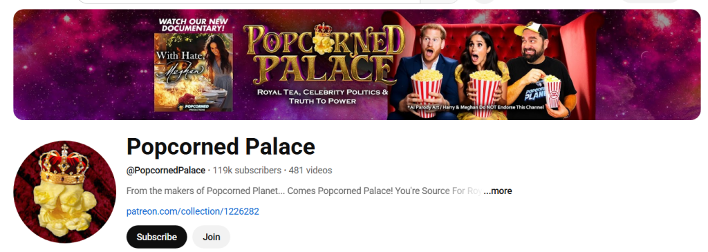 In addition to his main channel, Popcorned Planet , he runs Popcorned Palace, a channel solely dedicated to following every move Meghan Markle and Prince Harry make, as if it were somehow relevant to people who weren’t following them. The Meghan Markle grift (highly astroturfed, as confirmed repeatedly by Bot Sentinel) started in 2022, right after Signore and his “team” were done with Amber Heard. As you can see, the latest video was posted a mere 3 hours ago and a video is posted daily. It’s a daily dose of hating complete strangers for existing and doing innocuous things. How anybody watches this stuff is beyond my ability to comprehend.