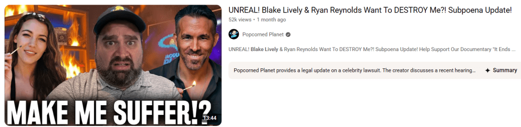 Signore frequently presents his commentary as “analysis” or “breakdowns,” as seen in the YouTube description of his Lively/Baldoni video.