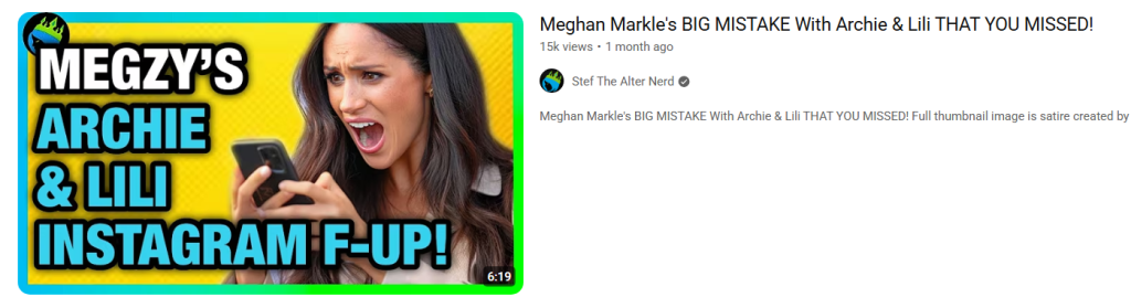 The channel seems mainly run by Stef The Alternerd, whose upstairs wiring is definitely crossed in some way, as she feels comfortable scouring for any angle to attack and analyse Meghan Markle daily. Since 2022. Put that into perspective. Does You span over a period of 4 years plus? Not sure.