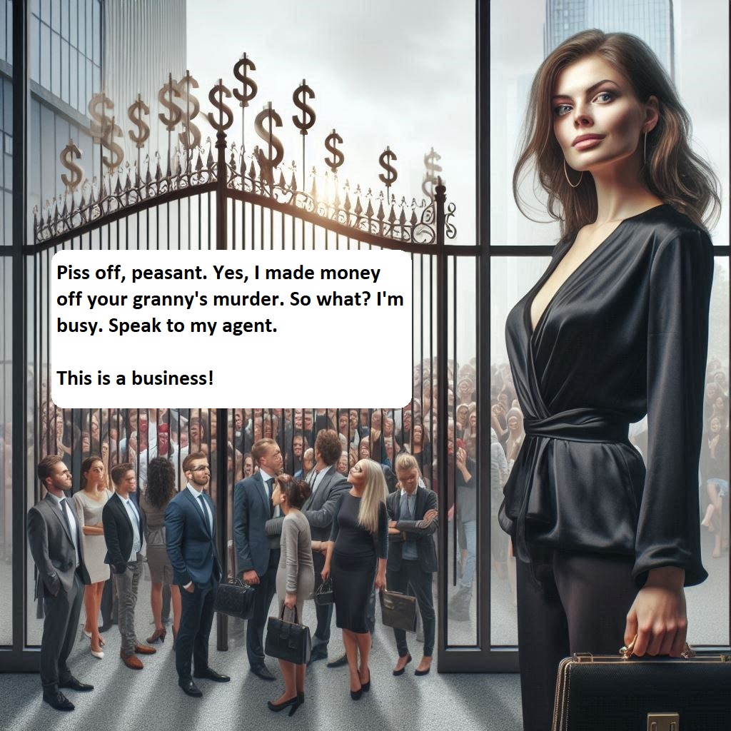 - Creating an identity for oneself as someone whose livelihood is based on discussing serious crimes, with the assumption of having the right to continue, regardless of egregious mistakes.