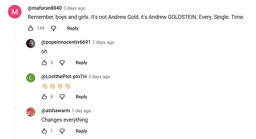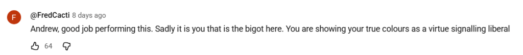 Queue the comments in support of the anti-Semite’s honesty. From Gold’s own audience. Perhaps a few supporters of Laws, who weren’t typically watching, stepped in as well, unexpectedly. But this should be no surprise.