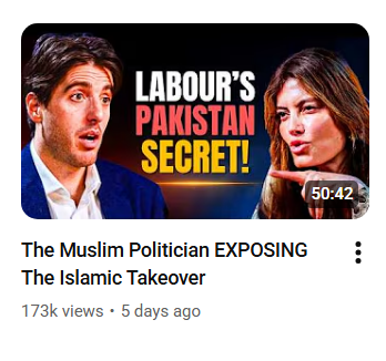 In January of 2024, taking instruction from Musk & company, Gold started inciting intensely against Muslims, portraying them as a threat to the UK (suggesting that they should be either converted or deported, perhaps, without saying it explicitly). He has maintained the same line ever since, interviewing people like Katie Hopkins (who once compared asylum seekers to cockroaches), Liz Truss (who is now podcasting from the vegetable patch) and Reform mouthpiece Laila Cunningham.