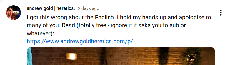 Finally, and I guess you’ll have to take my word for this, as he seems to have deleted these videos. Gold turns anything into content, including videos he knows for sure are based on inaccurate stories. I can give two examples: