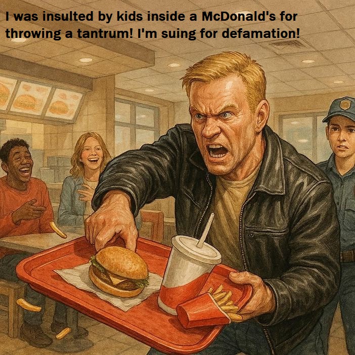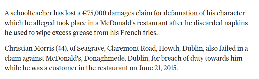 Would you believe the same individual had sued McDonald’s over insults hurled at him by a third party, while he happened to be throwing a tantrum on the premises? From the Irish Independent: