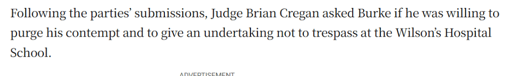 All Burke had to do was commit to obeying the court order; to stop going to a place where he no longer had any business and where his presence caused justifiable alarm. Imagine if a former employee of any company or institution turned up consistently to their former workplace, causing a scene.
