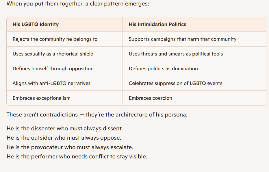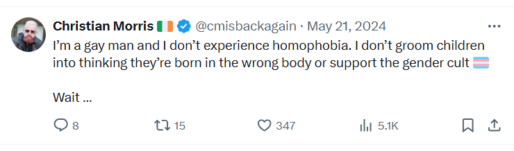 This particular type of fascist deserves a post of its own, as it has become a stereotype. Morris, who is openly gay, while denouncing activism for LGBT rights, pulled a Dave Rubin. He refers to these activists as groomers and paedophiles, rejoicing when Pride events are cancelled through intimidation by fascists.