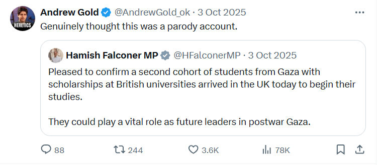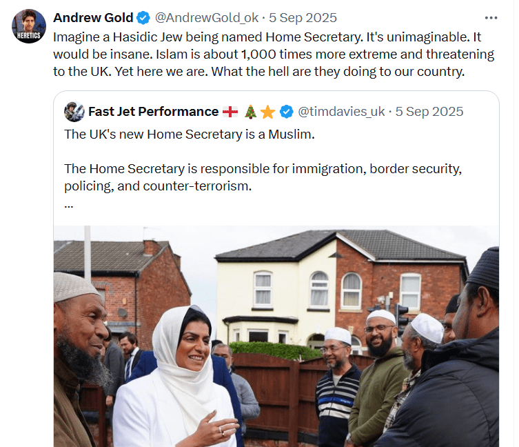- Shabana Mahmood announced immigration reforms that seek to appease the far-right; reforms Gold is surely in agreement with, directly contradicting his initial take on her. She faces constant criticism from the left (rightfully so). In fact, she recently threatened to quit over this. Gold didn’t even wait to see what she intended to do; he saw red as soon as she was named, only because she was Muslim.