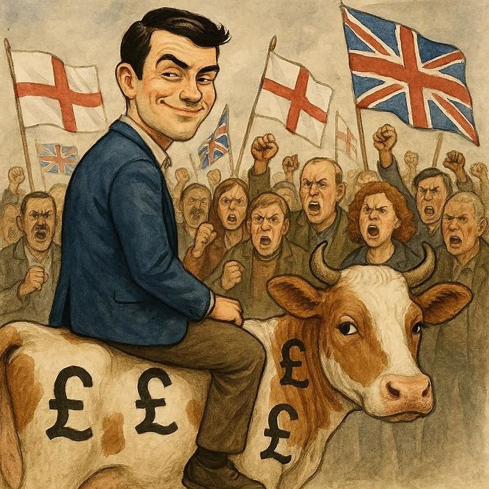 Truthfully, Reform are heading towards the ground faster than Musk’s exploding rockets. In a bid to go mainstream, Farage has opened the door to any Tory seeking to remain on the dancefloor, after having angered the population for 14 years with terrible austerity policies. Farage’s entire shtick had been about representing the common man, not entitled Eton boys of old, already sold to private and foreign interests.